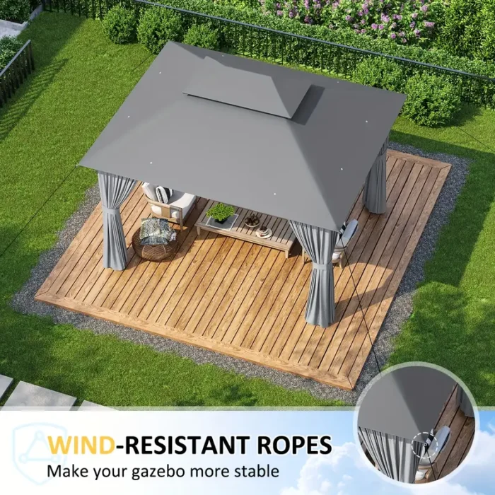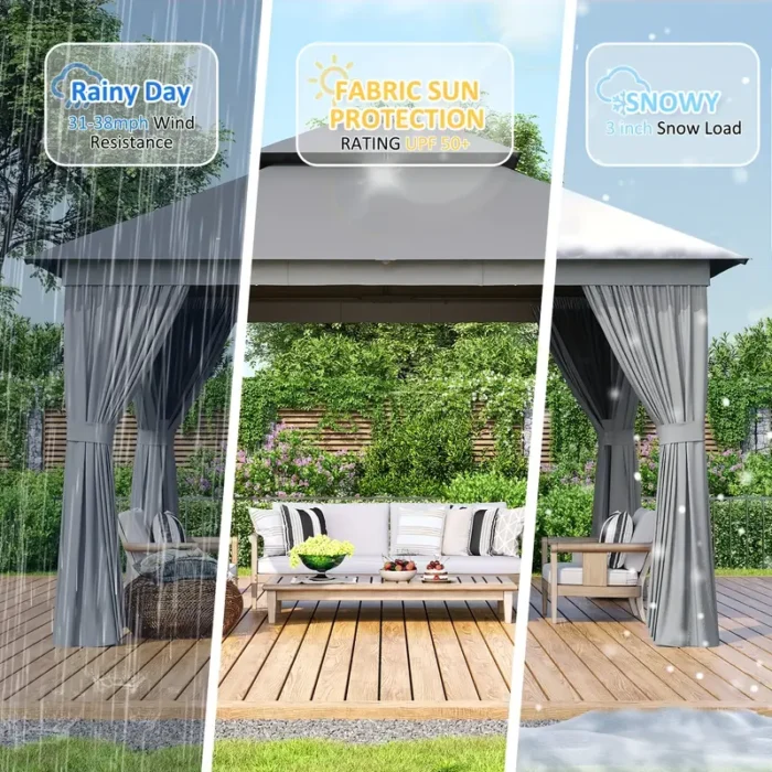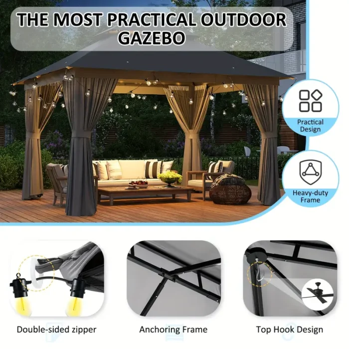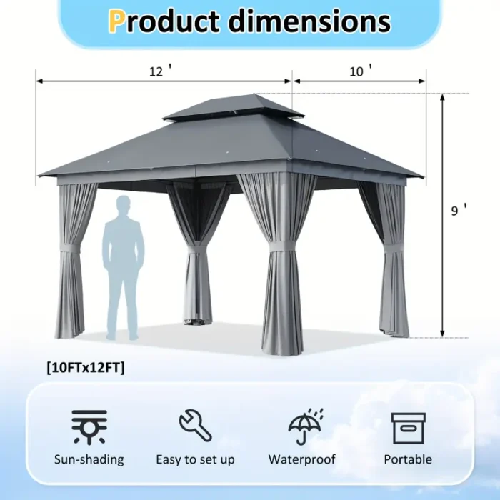 Imagine a space in your own backyard where you can escape, entertain, and make lasting memories, no matter the season. Our 10×12 ft heavy-duty gazebo is designed for year-round enjoyment, blending robust, all-weather protection with elegant style. It’s more than just a canopy; it’s an extension of your home, crafted with the quality and care you expect from NoNasties.